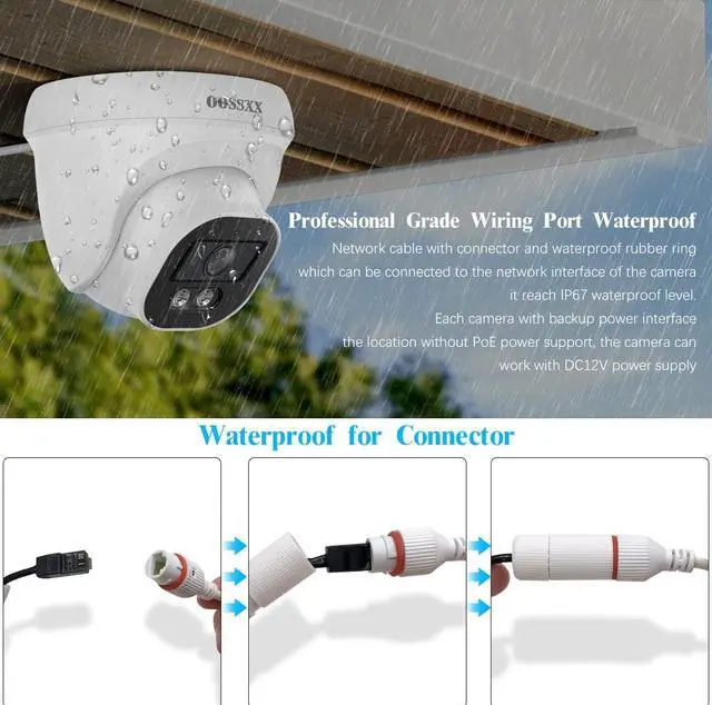 {4K Ultra HD } Super HD 8.0MP cameras Capture crystal clear videos day & night. The 3pcs infrared array LEDs allow you to get high-quality night vision up to 100ft, helping you to protect your property even at night.