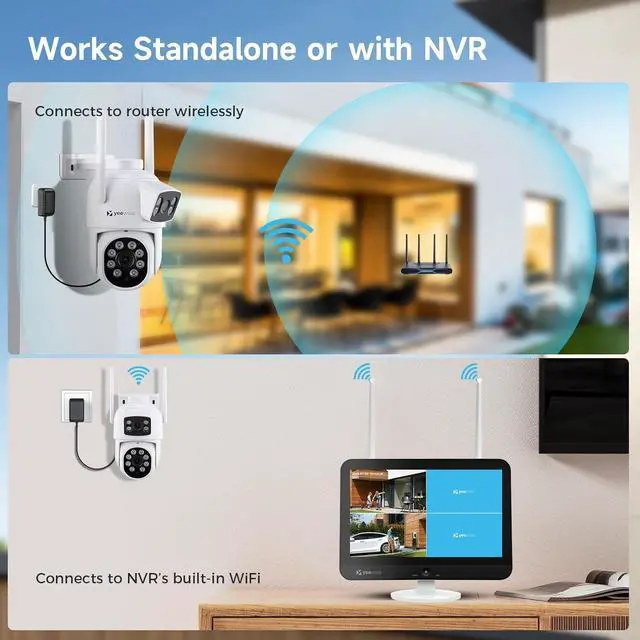 Works Standalone or with NVR: The camera can either work independently on its own, or as an add-on camera for your Yeewise NVR or systems. When work standalone, it records footage directly onto a local SD card; when connected to a NVR, it records and stores video footage in the NVR's hard drive.