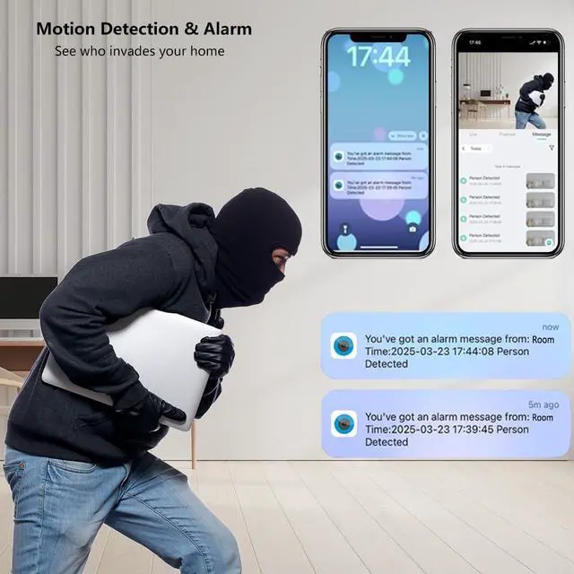 AI-Powered Motion Detection & Alerts: Utilizing AI-powered motion detection, the camera accurately identifies movement and sends real-time alerts to your smartphone, enabling prompt responses to potential security events.