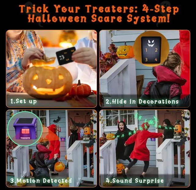 Demon Eye Design for Extra Scares: The sensor features a red flashing demon eye that gives a terrifying effect when it detects movement at night. Its sure to startle guests, trick-or-treaters, or any visitors, setting the perfect Halloween mood in your yard or driveway.