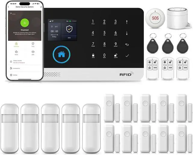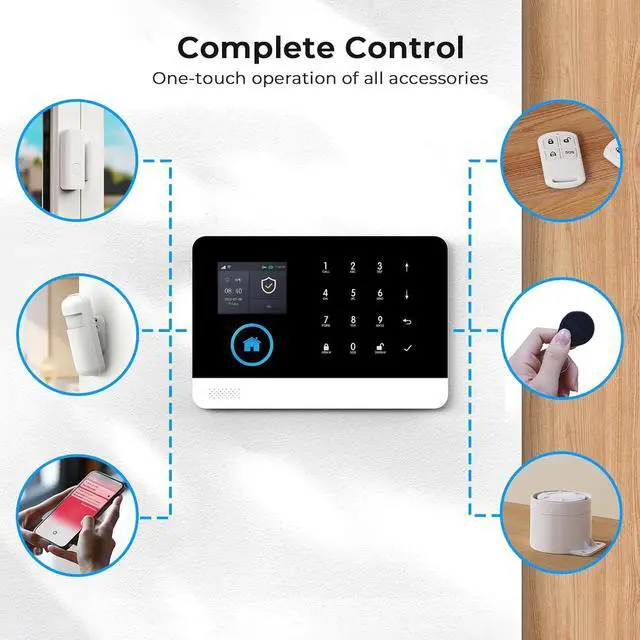 Multi-Channel Alarm Mode--- Support multi-channel alarm mode such as app push, SMS push and voice monitoring. This Wireless Home Alarm 20 Piece Kit can make and answer calls, voice messages, to provide you with an intelligent life.