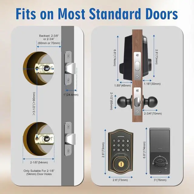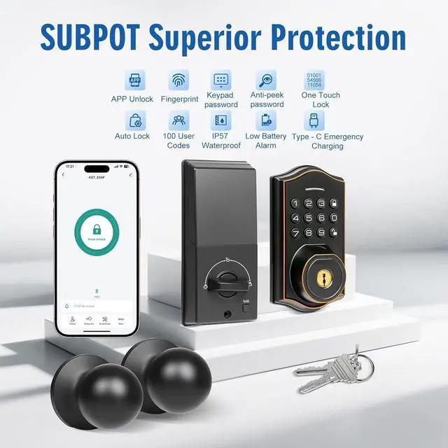 [Keyless Entry Deadbolt with Handle Set]: Our Keypad Door Locks Offer Multiple Unlocking Methods, Including App Access, Fingerprint Recognition, Password Entry, Electronic Key Sharing, And Mechanical Key Override. Smart Fingerprint Door Lock Supports Storing Up To 50 Unique Passwords And 50 Fingerprints, Not Only Can You Set Passwords And One-Time Passwords For Your Family And Friends, But Also You Can View The Unlocking History On The App