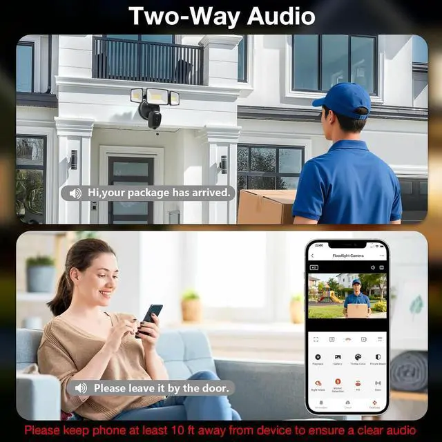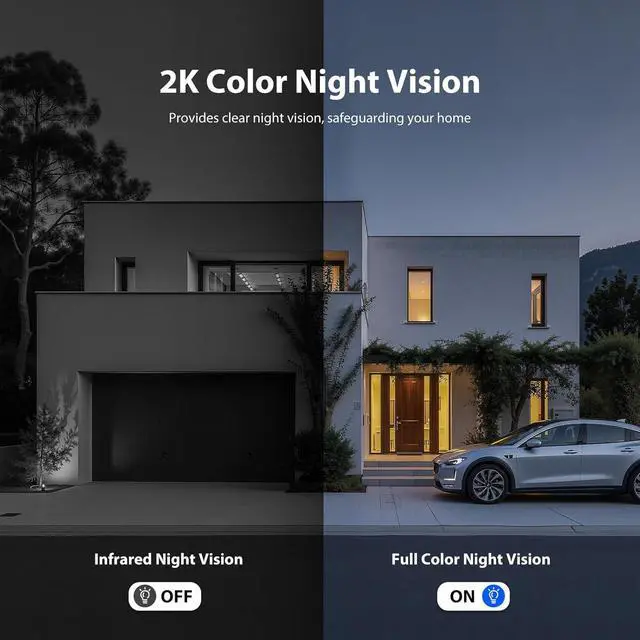 2K HD Color Night Vision: The outdoor floodlight camera captures and streams 2K HD video for detailed recordings, featuring full-color night vision and capturing critical details to help you identify suspicious individuals and enhance your nighttime security