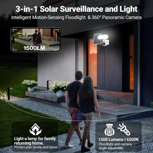 2K High-Definition Video With Full Color Night VisionFloodlight Wireless Security Camera offers 2K HD resolution6500 Color Temperature for superior day and night vision. Allows you to enjoy vivid and accurate colors even in low-light conditions.Combines solar-powered security camera clarity with smart lighting for driveways, garage, yards, front door, porch, balcony, shed, farm, animal pens and commercial properties