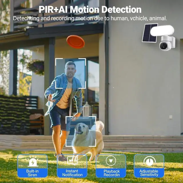 PIR+AI Motion Detection & Live Two-Way TalkWith the sensitive PIR motion sensor combined with AI, tImprove object detection accuracy and accurately push alerts. You can receive real-time alerts and communicate from anywhere using the two-way audio function of our camera,You can also communicate with visitors or warn intruders by pressing the microphone within the app. Share camera access with family