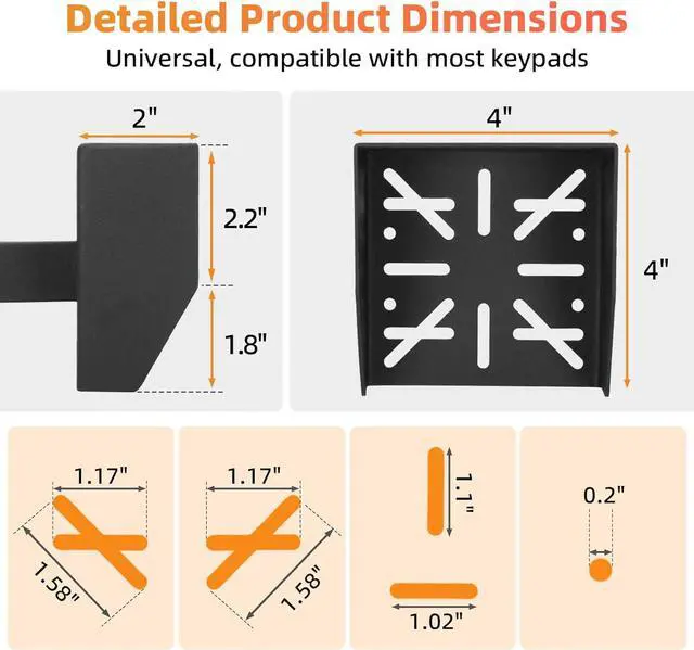 Compatibility: The dimensions of the keypad mounting pedestal are 4 x 4 inches. Please measure your door keypad to ensure compatibility before purchasing