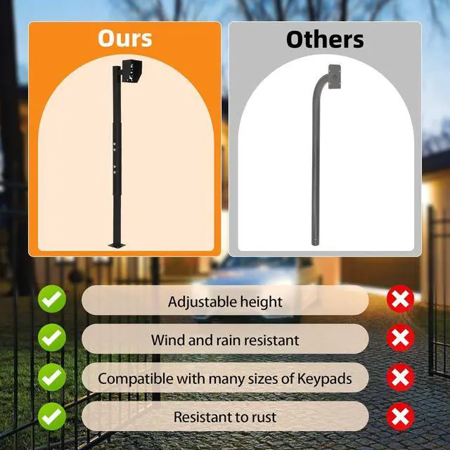 Durable: Keypad mounting post is made of high quality heavy duty metal with black powder coated surface, which is durable and can easily cope with the erosion of the outdoor environment, effectively preventing rust and corrosion