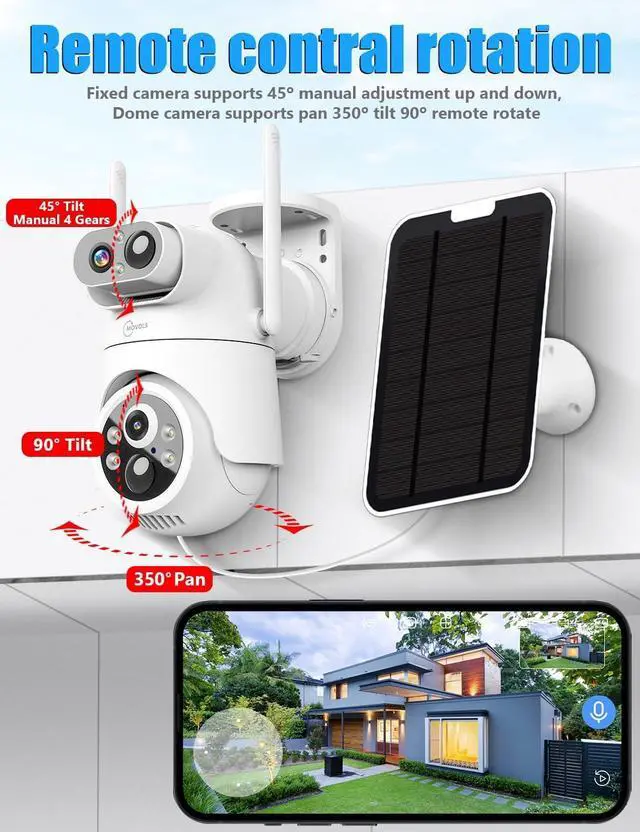 Dual Lens 360 viewing & Auto TrackingThe cameras without wifi needed provide you with dual lens 4MP+4MP resolution to ensure that the video is clear and sharp, while the color night vision allows for accurate color representation even in the dark (Spotlight needs to be manually set on in the APP). Additionally, a wide-angle lens with horizontal rotation and vertical rotation provides a wider and more flexible view angle