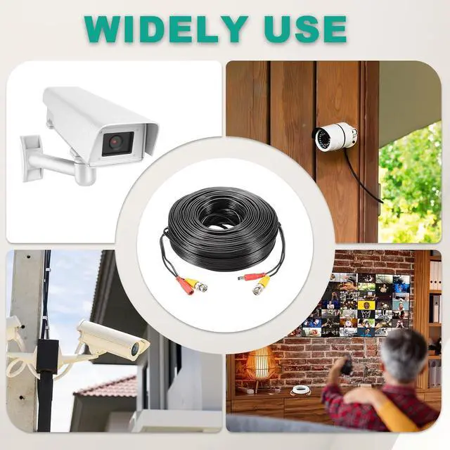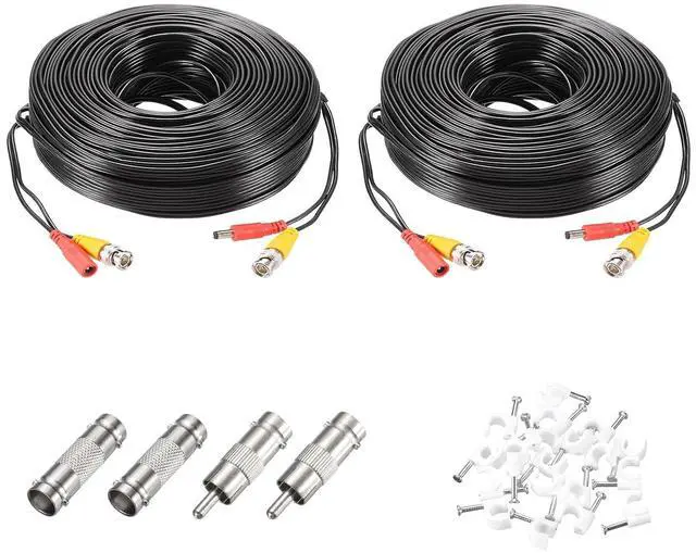 BNC Security Cable;Wire Diameter:3.5mm/0.14inch;Length:60m/197ft;Interface Type:5.5x2.1mm/ 0.22x0.08inch;Color:Black;Material:PVC;In the package of: 2 set x BNC Extension Cable(1 BNC female to female connector + 1 BNC female to RCA male connector + 240 cable clips)