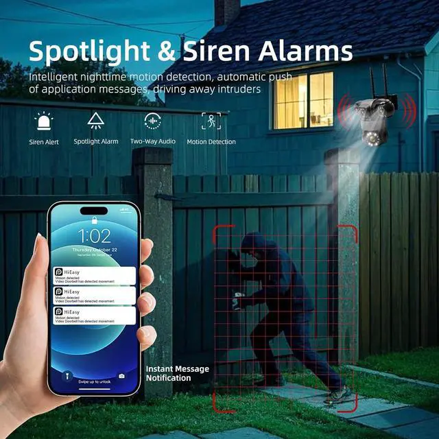 AI Human Motion detection and Auto Tracking, 2-way Audio : AI human motion enable to high efficially detect and autolly track potenial intruders, instantly activates spotlight & siren("reliable alerts with fewer false alarms"), support 2-way audio talk.