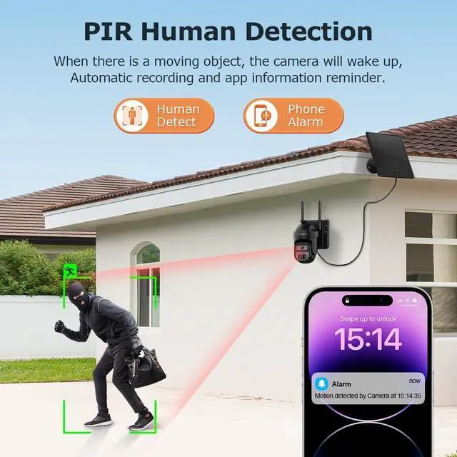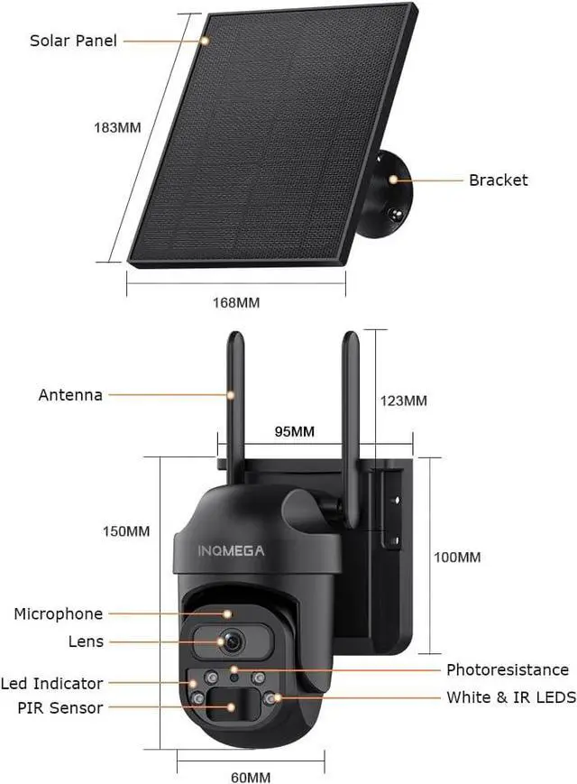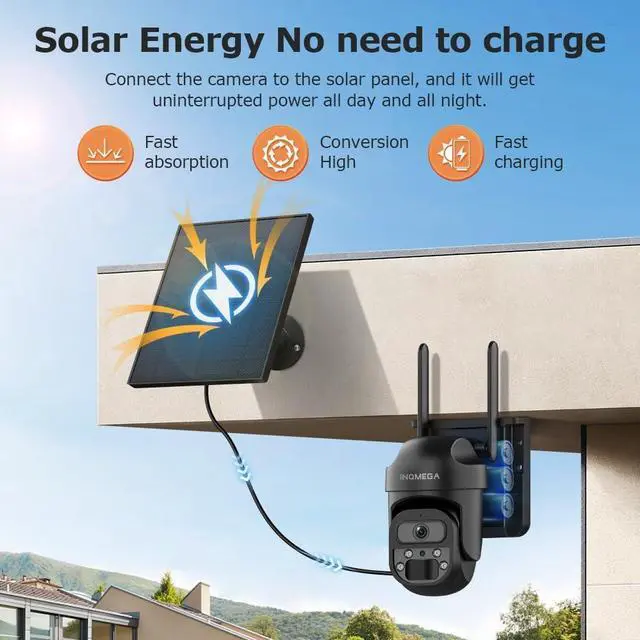 5W Solar Panel and 8000mAh BatteryNo plug required,Camera With 5W High Efficiency Solar Panel and a built-in 8000 mA rechargeable battery.Full Charging,working 3 months.The solar panel supports separate installation, with an extension cable of 8.5ft