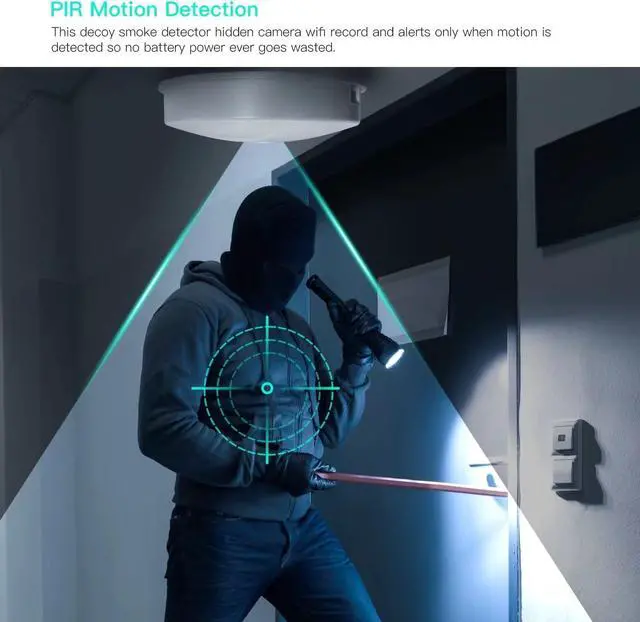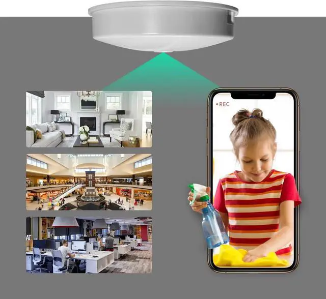 1080P HD Real-Time Surveillance with Enhanced Night Vision Featuring 4 infrared lights, this wireless mini camera delivers crystal-clear 1080P live feeds and upgraded night vision. Even in pitch-black environments, it captures detailed footage to protect your kids, family, and valuables. Disguised as a smoke detector, it blends seamlesslynote: no actual smoke detection functionality.