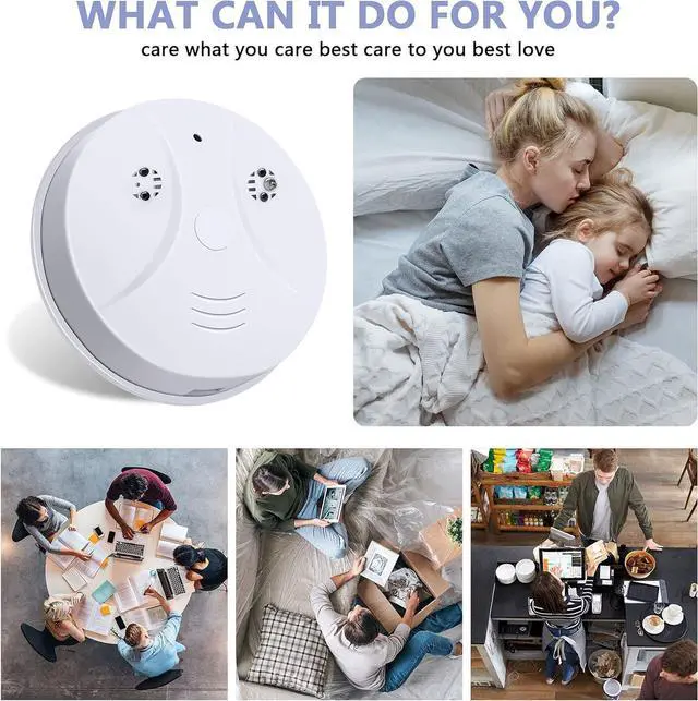 FULL HD 1080P Video Day & NightThe wireless nanny camera smoke detector provides 1080P HD video day and night,which can clearly let you know what's going on.Designed for home security, always keep an eye on your safety.Note: No audio recording