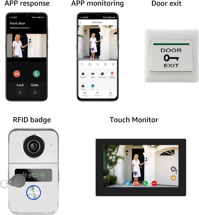 Open your gate / door with 5 in 1 Unlock The video intercom system provides far easier access controls while adding visual protection to verify your visitors. Via APP, 13.56Mhz RFID badges, NFC-enabled mobile phone, Indoor monitor, Door exit.