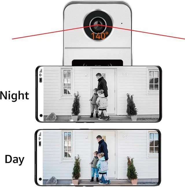 Full HD Doorbell Camera with indoor monitor The video doorphone consists of an outside unit made of brushed aluminum and a 7 inch inside touchscreen. Even when its dark, one can clearly see who is at your door thanks to the infrared camera, with sight up to 2 meter and140 viewing angle.