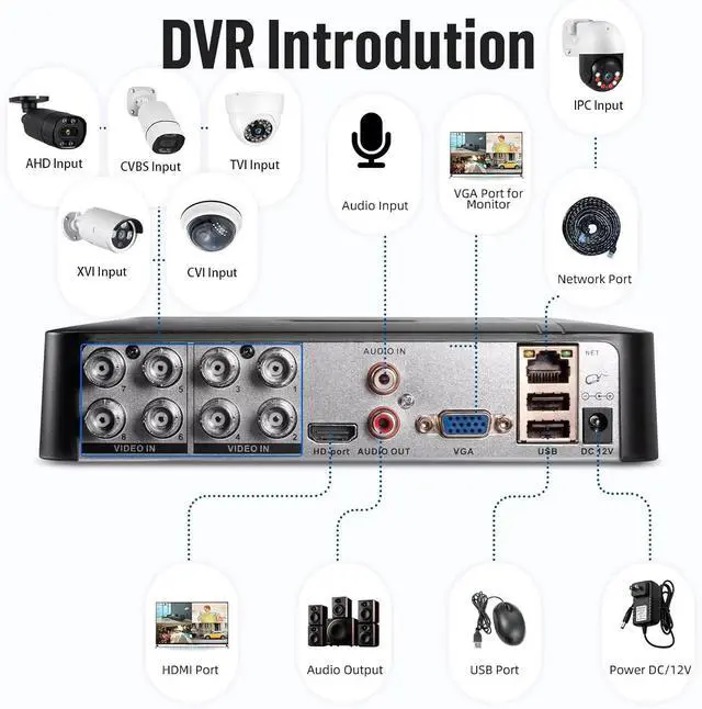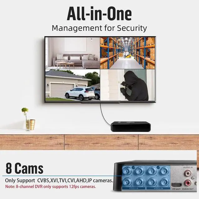 6-in-1 Hybrid DVR The expandable hybrid digital video recorder, combing the features of DVR/NVR, supports up to 8 pcs TVI, AHD,CVBS,CVI, XVI & IP cameras. So, you have full-range security camera choices for your property. Add any analog camera type you want to the DVR for seamless integration.It is highly recommended that this DVR works with Fuers wired cameras to to achieve optimal performance.