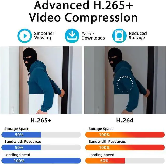 Security-Grade 500G HDD & H.265+ CodingThis 8 channels DVR utilizes intelligent algorithms to adapt a high/low bitrate whether the scenario is complex ,H.265+ coding offers longer recording time before having to overwrite the older recordings, saving up to 50% of storage space than H.264 systems. You'll enjoy fast & smooth streaming without latency when accessing the DVR.And an included 500G hard drive saves you extra expense.