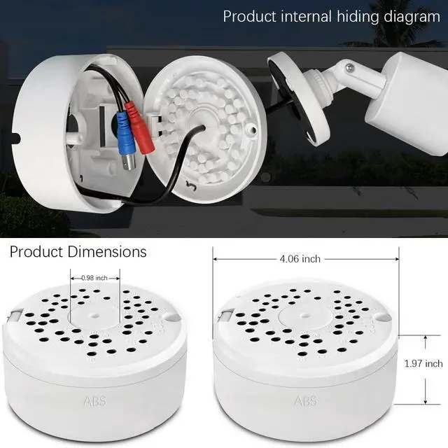 Size DetailsOur junction box for bullet cameras measures 4.09 x 4.09 x 1.97 inches, making it suitable for various installation needs. Please double-check that this size meets your specific requirements before making a purchase to ensure optimal performance.