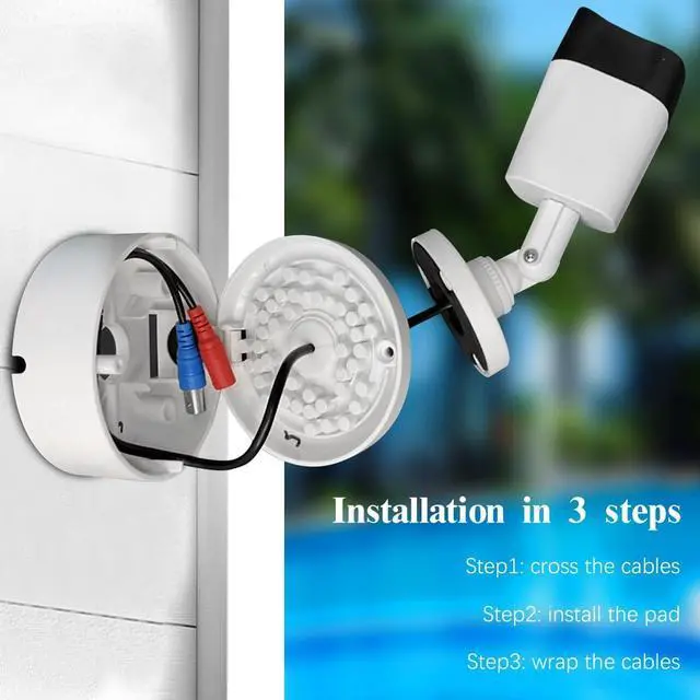 Simple InstallationStart by securing the camera junction box to the wall with screws. Next, run the extra wiring through the center hole of the security junction box. Finally, snap the cover on, and youre all set! This simple process lets you easily mount your security camera while keeping your wiring neat and tidy.