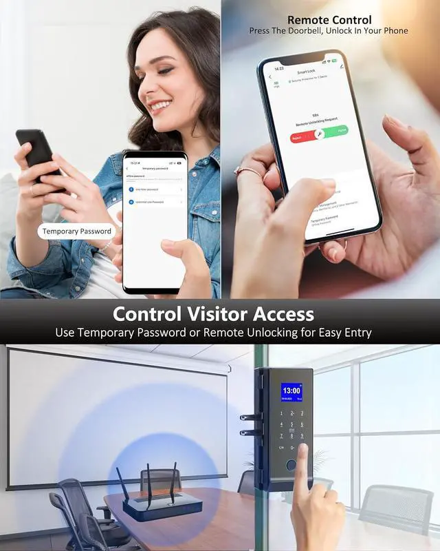 App Smart Control: You can control the lock remotely via the app. Visitors can request access by pressing the doorbell, and you can unlock via the app or set a temporary password for keyless entry.Whether you're in the bedroom, kitchen, bathroom, or while you're away, opening the door for your family and friends is much more time and effort efficient. You can also set up a temporary code for easy access for your guests, and a time-limited temporary code is also more secure.