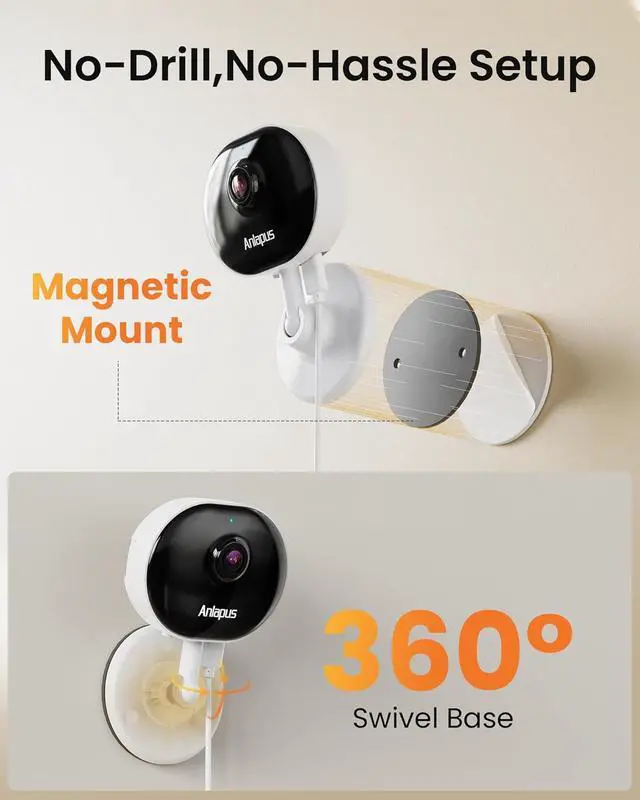 (1). [ Easy to Install, Work with Alexa ] __ With a magnetic mount and adhesive Tape, this lightweight camera can be easily adjusted and installed on most flat surface in a variety of installation ways without drilling. You can quickly access your security camera via voice control. Just use simple voice commands to activate camera features with Alexa.