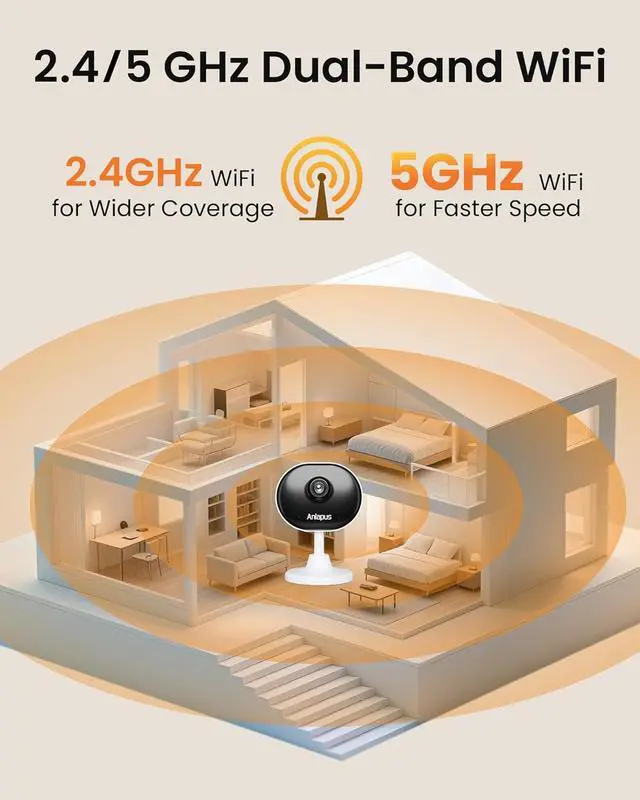(4). [Dual-Band WiFi & Two-Way Audio] __ Enjoy stable, high-quality video streaming with reliable connections on both 2.4GHz and 5GHz WiFi networks. Communicate clearly through the built-in microphone and speaker for crystal-clear two-way audio interaction.You can easily talk and comfort your baby or pet, providing them with reassurance and care.