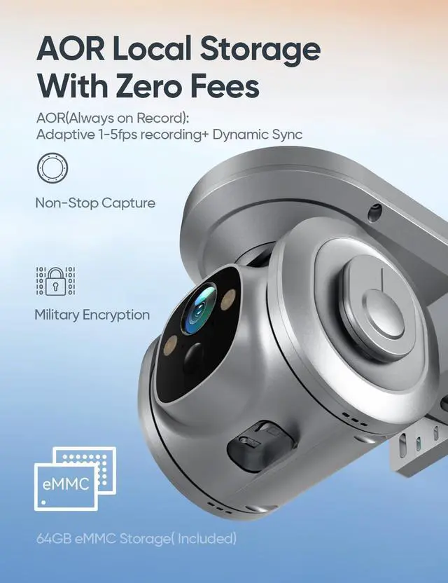 Military-Grade Storage with Zero Storage FeesWhen it comes to surveillance & security cameras, our no wifi security camera stands out. With a built-in 64GB eMMC, it provides 10× faster speeds compared to SD cards and anti-theft protection thanks to its non-removable parts. Optional paid cloud storage on U.S. AWS servers is also at your disposal. By eliminating ongoing costs, this camera offers peace of mind, making it a top choice for reliable home security, vehicle monitoring, farm surveillance, and wildlife observation