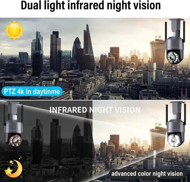 4K HD & 30X OPTICAL ZOOM:This 4K WiFi PTZ Dome IP Camera is with resolution of 8MP(3840*2160). With the 30X optical motorized zoom lens, you can quickly bring scenes up to 320 feet away to your eyes, and experience excellent night vision with 4 high-performance infrared array LED lights (including 2 powerful laser far-infrared lights), which can extend your viewing distance to 320 feet. The enhanced clarity and range provided by laser infrared technology exceeds ordinary infrared lights, which is perfect for monitoring your home outdoor wide area. Whether it is day or night, you can ensure safety.