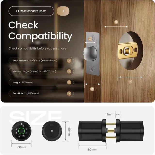 Installs Faster Than a Coffee Break - No need to hire a pro! You can upgrade your door to a smarter, safer one in just 15 minutes with a screwdriver. Our electronic lock is designed to fit most standard doors, so you'll have it installed before you finish your morning coffee
