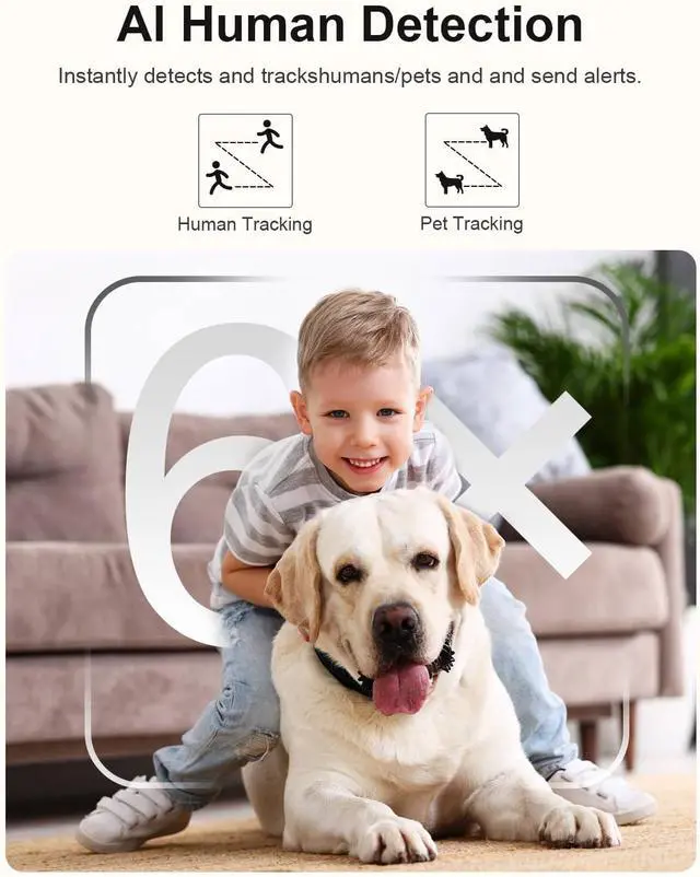 Dual Cameras, 4K Ultra-Clear, Advanced 6x Zoom: Our cameras for home security equipped with dual cameras and 4K UHD resolution,the 4K wide-angle and telephoto cameras work together to provide an impressive 6× hybrid zoom;whether you're monitoring your pets, babies or elderly loved ones, this wireless camera' crystal-clear resolution ensures you'll never miss a detail