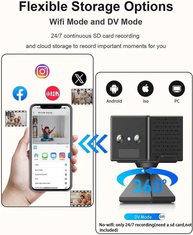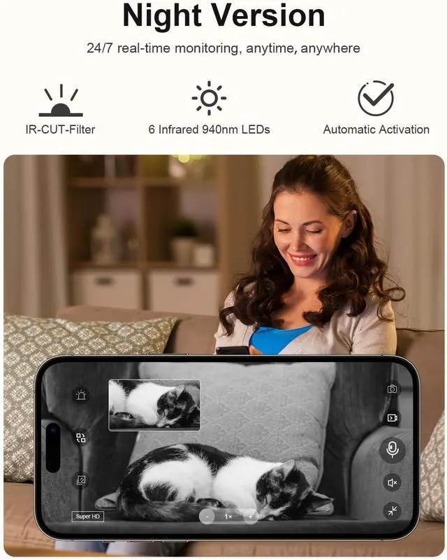 Free Cloud and Local Storage & Device Sharing: This wireless camera offers both SD card and cloud storage for flexible management of recorded footage; with a maximum capacity of 128GB (SD card not included) for continuous 24/7 recording; nanny cam support view your wifi camera feed from Four different smart phone devices