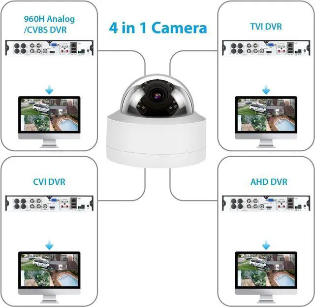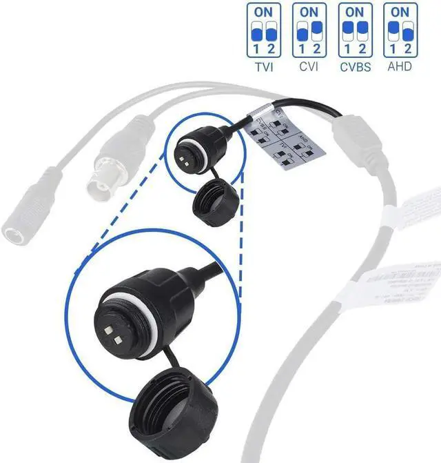 UNIVERSAL PLUG & PLAY UPGRADE: Features a handy DIP switch on the cable. Easily switch the video output format between TVI, CVI, AHD, and CVBS to ensure seamless compatibility with most existing coaxial DVR systems on the market. It's the perfect, hassle-free upgrade for your old analog setup.
