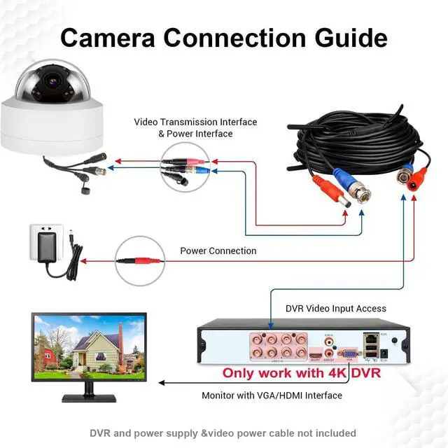 CRYSTAL CLEAR 4K HD: Experience superior clarity with 8MP high-definition video. This camera provides a much sharper and more detailed picture than traditional 1080p analog cameras. This 4K Analog camera does NOT work with 5MP or lower resolution DVR, only works with 4K 8MP DVR.