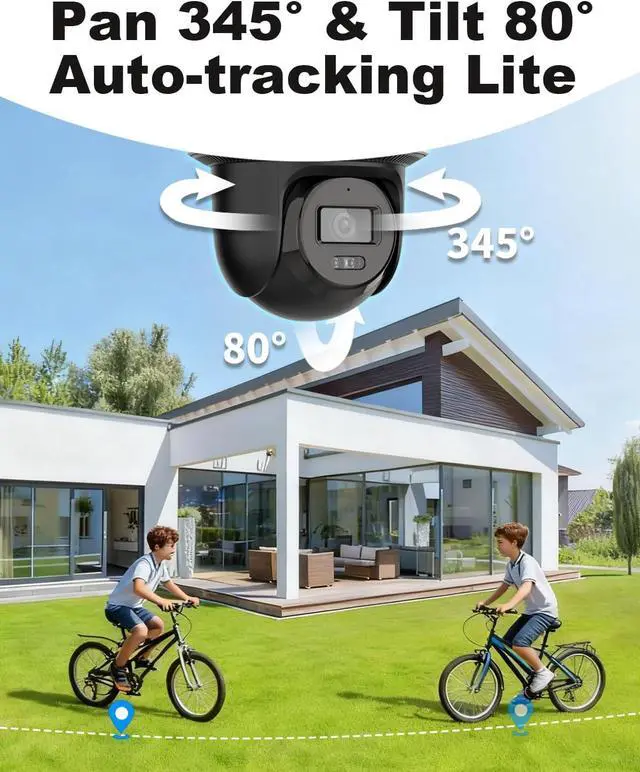 Eliminate blind spots with 345° pan and 80° tilt coverage. This PoE IP camera automatically detects and tracks human movement across its wide viewing range, ensuring comprehensive monitoring for your property. Enjoy seamless auto-tracking that follows activity around your home for enhanced security awareness