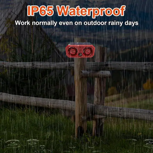 Solar Powered & USB Charging: This motion sensor animal drive out outdoor offers dual charging options for reliability.With rechargeable battery,outdoor alarm siren supports USB charging for backup during inclement weather.The dog bark motion sensor alarm efficiently charges under normal conditions. Constructed from durable ABS plastic with an IP65 waterproof rating, ensuring long-lasting performance with minimal maintenance