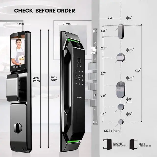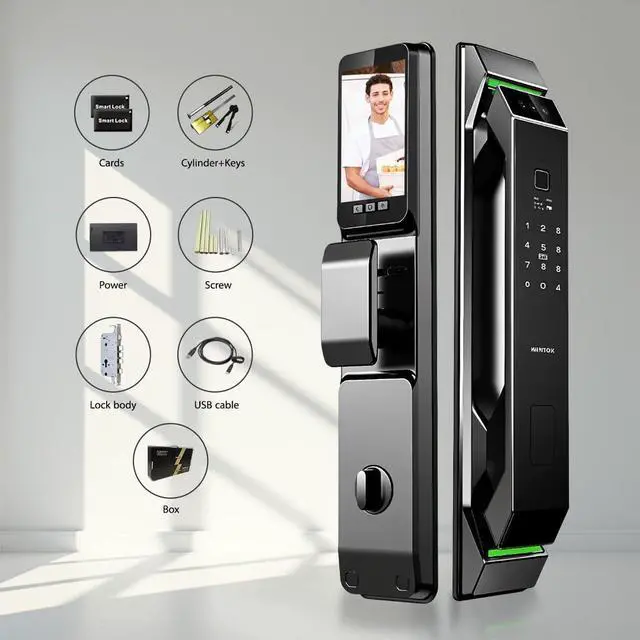 7-in-1 Futuristic Unlocking Options Enjoy ultimate access flexibility with 3D Face Recognition, Palm Vein Scanning, Fingerprint ID, Passcode, IC Card, Tuya App control, and Emergency Key. Perfect for every member of your family or guest.