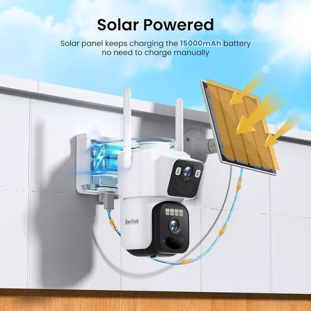 Smart PIR Human Detection: Be notified instantly when it detects unexpected visitors. Solar panel recharge battery, battery power camera when there is no sunshine, wifi antena connect to your home 2.4Ghz/5G wifi routher.