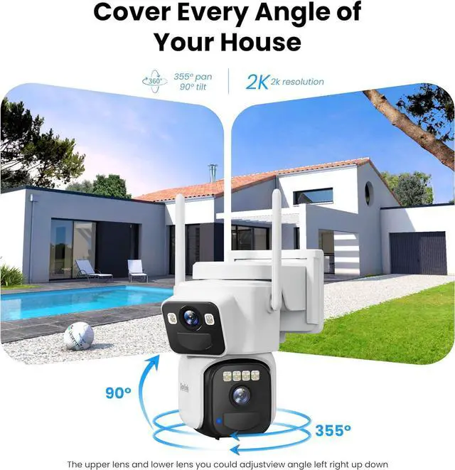 4K Dual Lens HD Image&360° View: Take a panoramic shooting and make sure no blind spots or zone,and get great video quality. Great IR night vision in darkness as well as Color night vision enabled by 6 powerful spotlights.