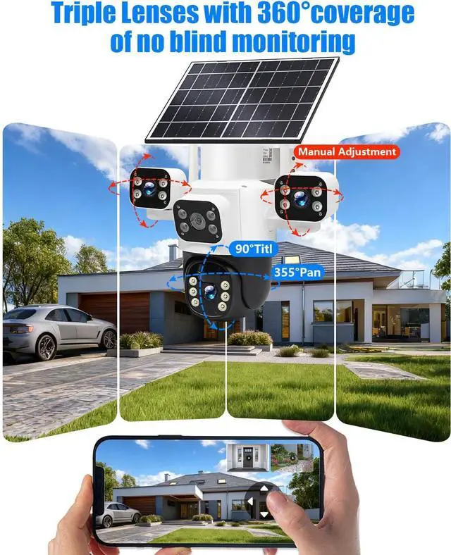 Triple Lenses Linkage + 355º Pan & Tilt: One device is more stronger than 2pc bullet cam + 1pc dome cam, can cover whole a yard 360º from front door to right and left boundary or mall hall, much value of money with a less cost and works of installation.