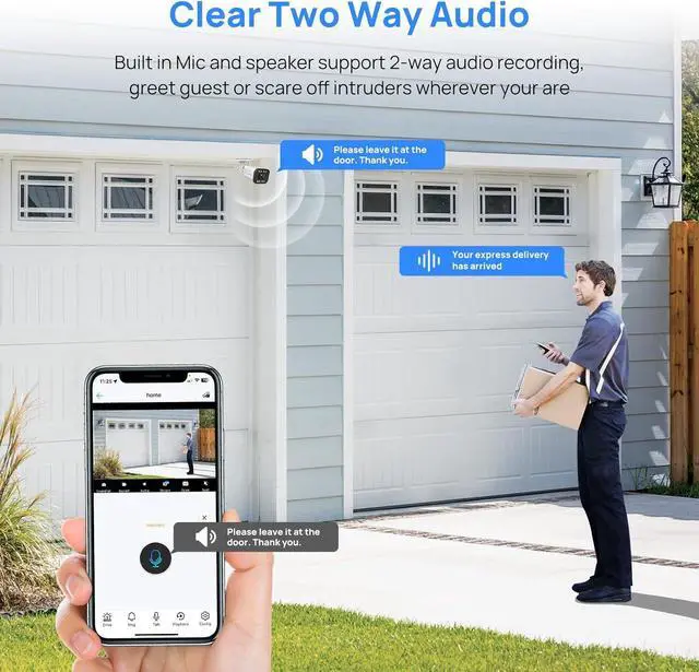 Intelligent Human/Vehicle Detection&Two Way AudioSay Goodbye to unnecessary Alarms. With advanced human/vehicle detection, the camera uses cutting-edge algorithms to identify true threats, reducing false alarms. The bullet camera outdoor can receive real-time push notifications from the "Videolink" app and email, supporting event video recording and quick timeline event playback.The 2-way talk can capture with more detail and achieve real-time conversation.