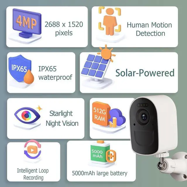 Solar-Powered Battery Cameras with Smart PIR Alerts Each camera features a built-in rechargeable battery and 1.7W solar panel for long-lasting, low-maintenance operation. PIR + motion detection intelligently filters out false alarms, while instant push notifications keep you connected via iOS, Android, or PC.