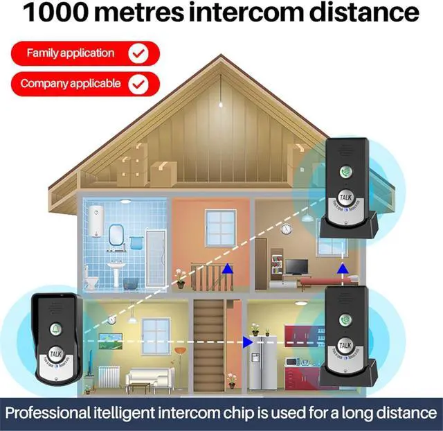 Remote This intercom can be used at a long distance of about 1500 meters, without network, without wiring, turn on and use.