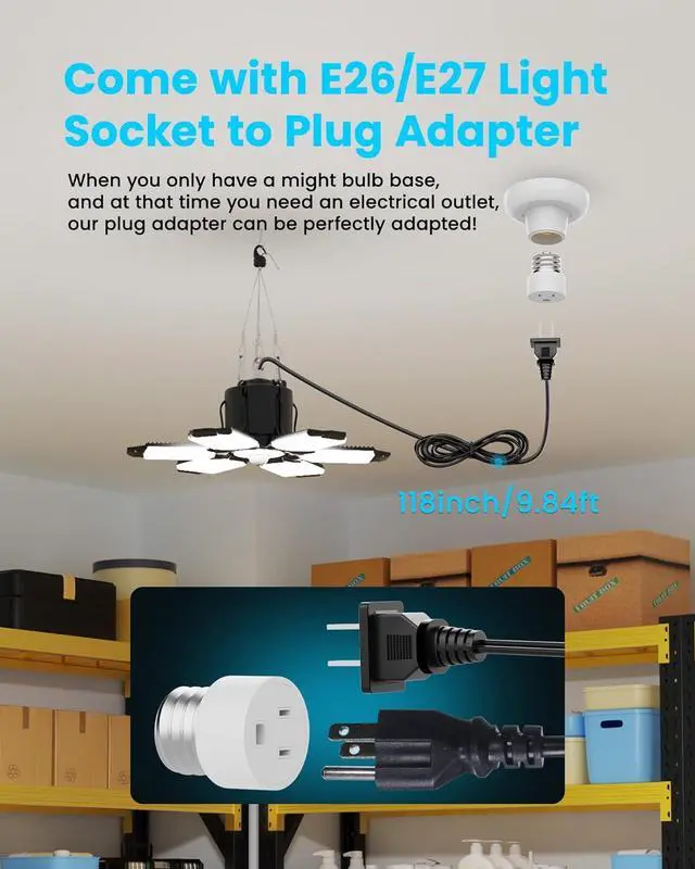 Industrial Choice for Every SpaceRugged plastic with aluminun heat diapation plate housing match with matte finish blends into garages, elevates modern basements, or complements farmhouse workshops. Rated for storage rooms, warehouses, workshops, barns, studios, attics, utility rooms, laundry rooms...