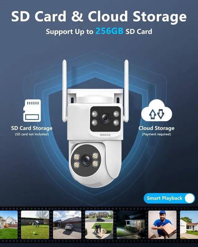 {2-Way Audio, Siren & Flashlight Alerts} This surveillance & security cameras feature a built-in microphone and powerful speaker, so you can have clear, remote conversations with visitors or intruders. If the wireless camera detects an intruder, it will sound an alarm with flashing lights and immediately send an alert notification to your phone. {2.5K Color Night Vision} Built-in 8 white light and IR LEDs, this outdoor camera wireless offers three night vision modes (Full Color/IR/Smart Mode) for optimal visibility. Its smart light sensor automatically adjusts to changing conditions, switching to color night vision when possible. With 10x zoom, 50ft long-range vision, enjoy crystal-clear video day or night. {Dual Lens, Dual Screen & 360° PTZ} Our home camera system combines a fixed panoramic lens for constant monitoring of key areas like your front door or garage, with an active tracking lens that rotates 355° horizontally and 90° vertically. Control the PTZ camera remotely via the app for near-360° blind-spot-free coverage. {AI Motion Detection & Auto Tracking} Featuring advanced AI human detection with 99% precision, this outside camera instantly distinguishes human from objects. Upon detecting movement, the tracking camera activates from standby and automatically follows human activity. Customize surveillance with up to 6 specific detection zones via the app. {2.4G/5G Hz WiFi & SD Card/Cloud} With dual-band WiFi-6 (2.4GHz/5GHz), this house camera delivers rock-solid connectivity, stronger penetration through walls, and interference resistance-ensuring seamless connection even on 5G home networks. Enjoy continuous 24/7 recording to SD cards (up to 256GB) or cloud storage, that you can remote review in anytime, anywhere. {4-Antennas to Enhance WiFi} The wireless signal is very important for this home security systems. If the wireless signal is weak, the video will be blurred/stalled/disappeared, so we will update all wireless outdoor camera to real dual antennas and upgrade the wireless nvr to 4 antennas. The wireless distance will be updated by about 55%, and the video will be even better. Smooth and clear. {Free APP No Month Fee} Download the free app "Honestview" from App Store on your smartphone. With an internet connection, you can watch the videos remotely from anywhere on your phone (IOS&Android), PCs, or tablet.