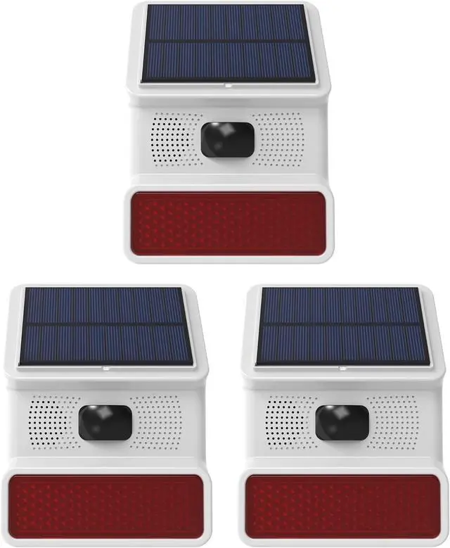 Independent Outdoor InstallationThis outdoor solar Motion Sensor Alarm system, When an intruder triggers the sensor/detector, motion detector alarm emits a loud and attention-grabbing 120-decibel siren accompanied by a flashing red LED light.THE motion detectors alerts neighbors and passersby in emergencies,effectively deterring potential intruders.