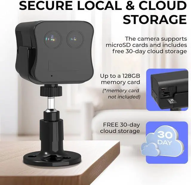 Long-Lasting Rechargeable BatteryThis wireless camera no internet needed features a powerful 3000mAh battery, offering up to 20 days of standby time. Store footage locally (up to 128GB, not included) or opt for the 30-day free cloud storage trial for secure data access.