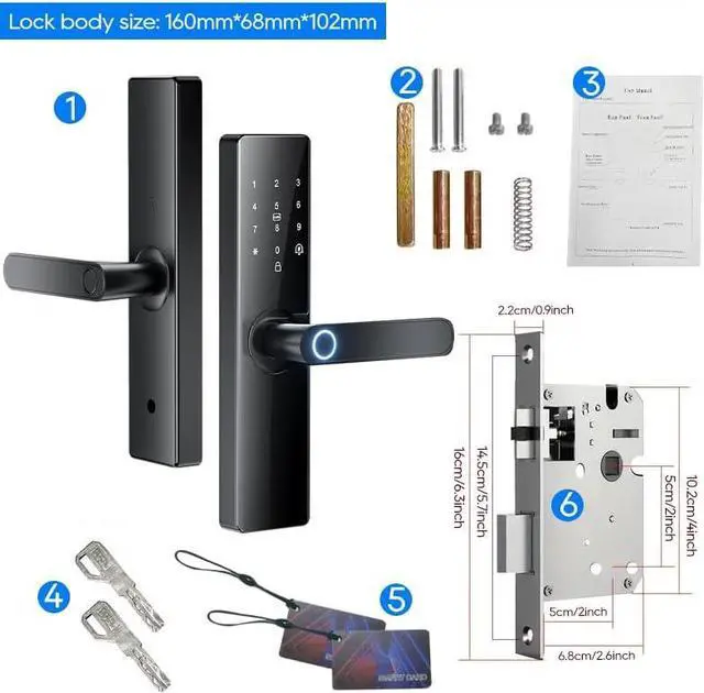 Easy Operation: You can not only unlock the door with your fingerprint, card, key or the code you set, but also can open the door with tuya APP(BLE), very smart and convenient.Fits most wooden doorsbetween 1-3/8" and 1-3/4"+ thick (3444mm+).