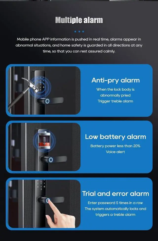 Indubitable Safety: Your fingerprint is unique in the world, which guarantee the safety without doubt. Taking advantage of technology of semiconductor and biological characteristics is adopted, which avoids the same fingerprint. What's more, made of durable Aluminum Alloy material, its quality is reliable.