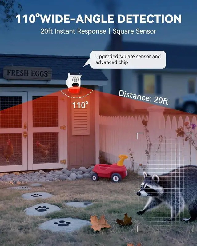 Multi-Scene Safety Solution: This 2-pack lets you cover multiple areas protect your garden, chicken coop, pool gate, and property with ease. Use as: animal deterrent with gunshot recordings, intruder alarm with barking dog sounds or safety broadcaster