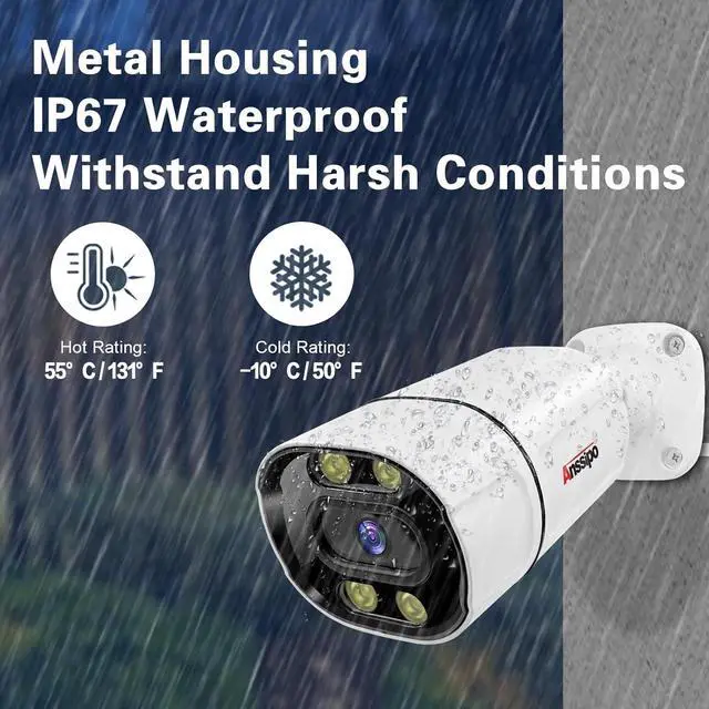 [4MP Full Color Even at Night] The Spotlight of the 4MP Megapixel surveillance cameras enables a full color night vision. You can switch to IR LED mode other time flexibly. The spotlight can also be Motion-activated to deter intruders working with the siren.